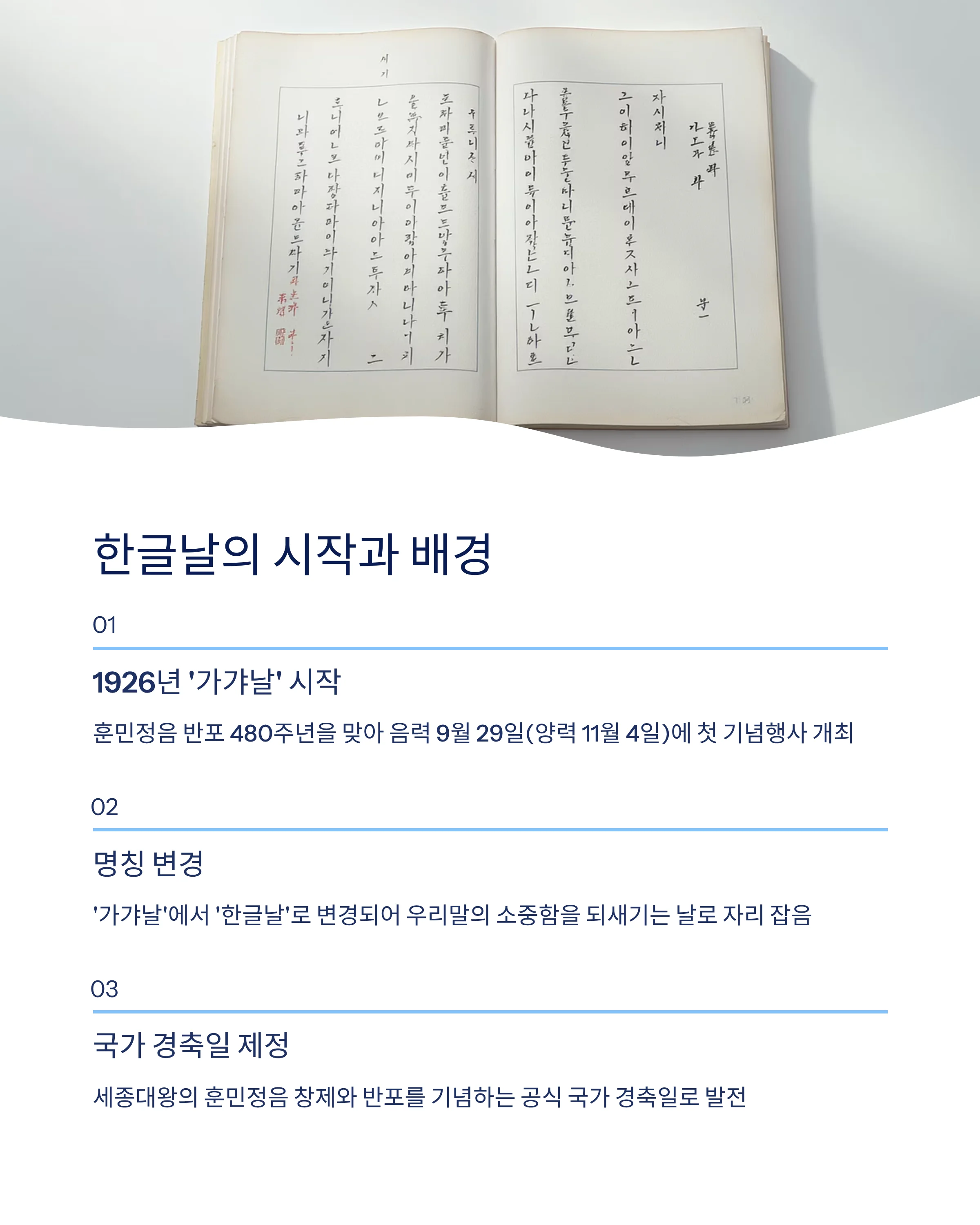 처음에는 ‘가갸날’로 불렸지만 이후 명칭이 ‘한글날’로 바뀌었습니다.